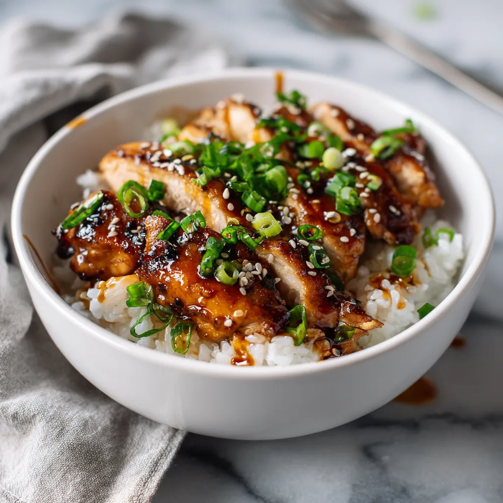 A homemade chicken teriyaki bowl with tender chicken, rich sauce, fluffy rice, and fresh toppings that tastes better than takeout.