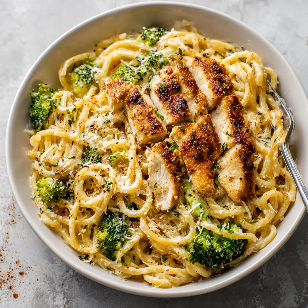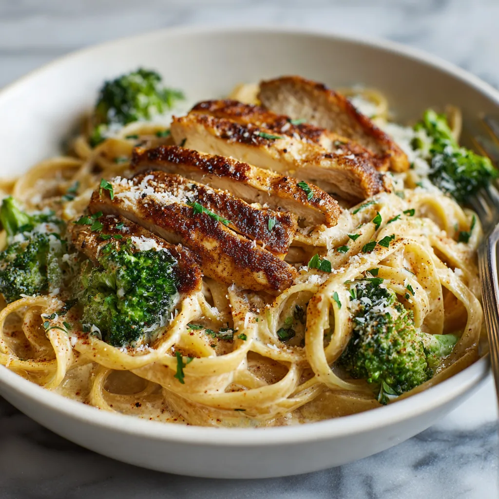 A rich and comforting pasta dish made with Cajun-seasoned chicken, tender broccoli, and a creamy Parmesan sauce.
