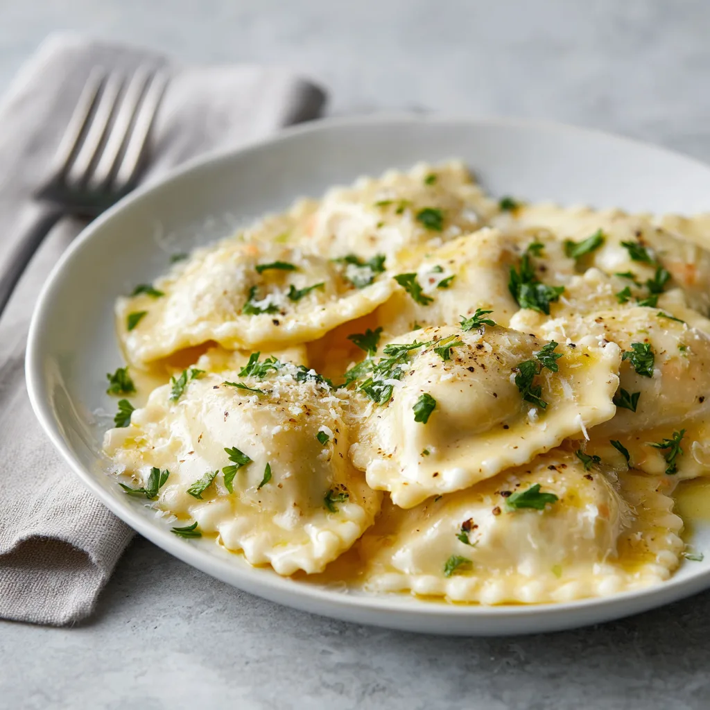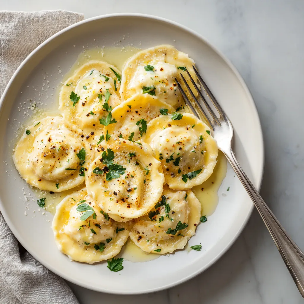16. Plate ravioli and drizzle extra sauce on top. Garnish with additional parsley or a sprinkle of Parmesan. Serve immediately.