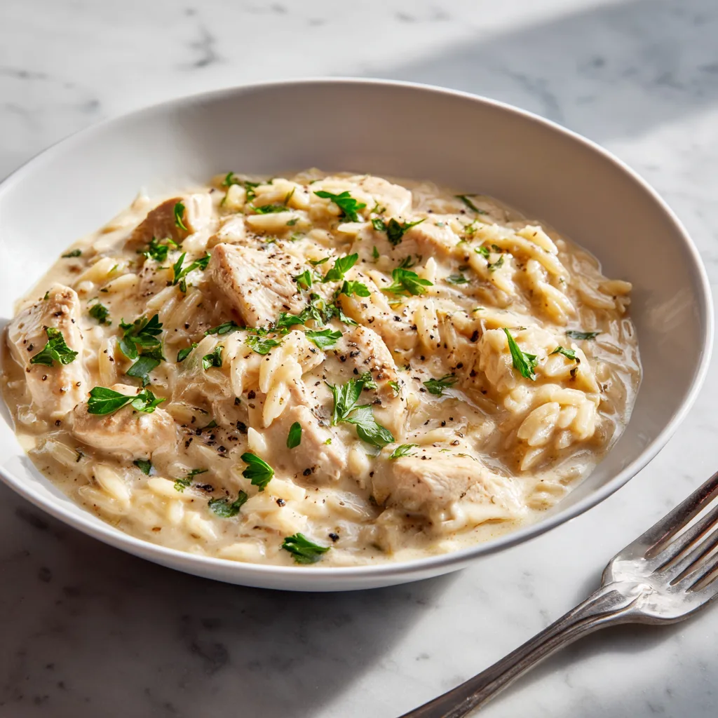This dish combines tender seared chicken, silky orzo pasta, garlic, herbs, and a luxuriously creamy sauce that coats every bite. Think of it as the perfect hybrid between risotto and pasta — but easier, faster, and totally weeknight-friendly.