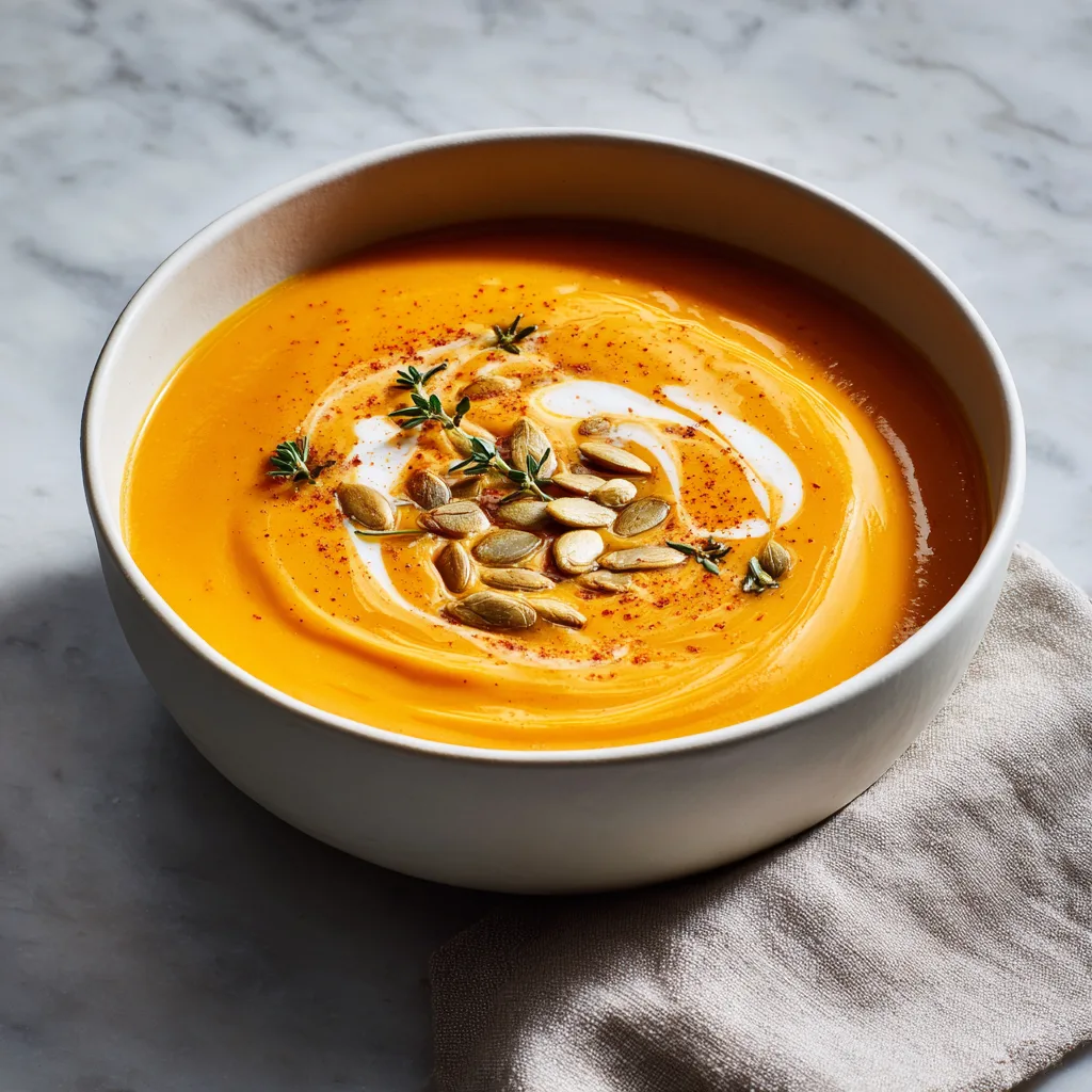 Ladle into bowls and garnish with cream swirls, pumpkin seeds, or fresh herbs.