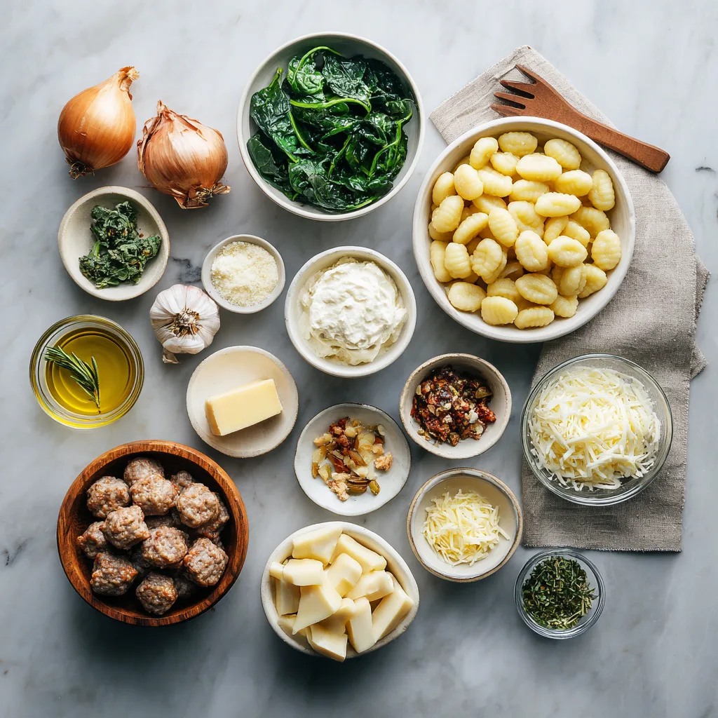 Ingredients for Creamy Sausage & Gnocchi Bake
