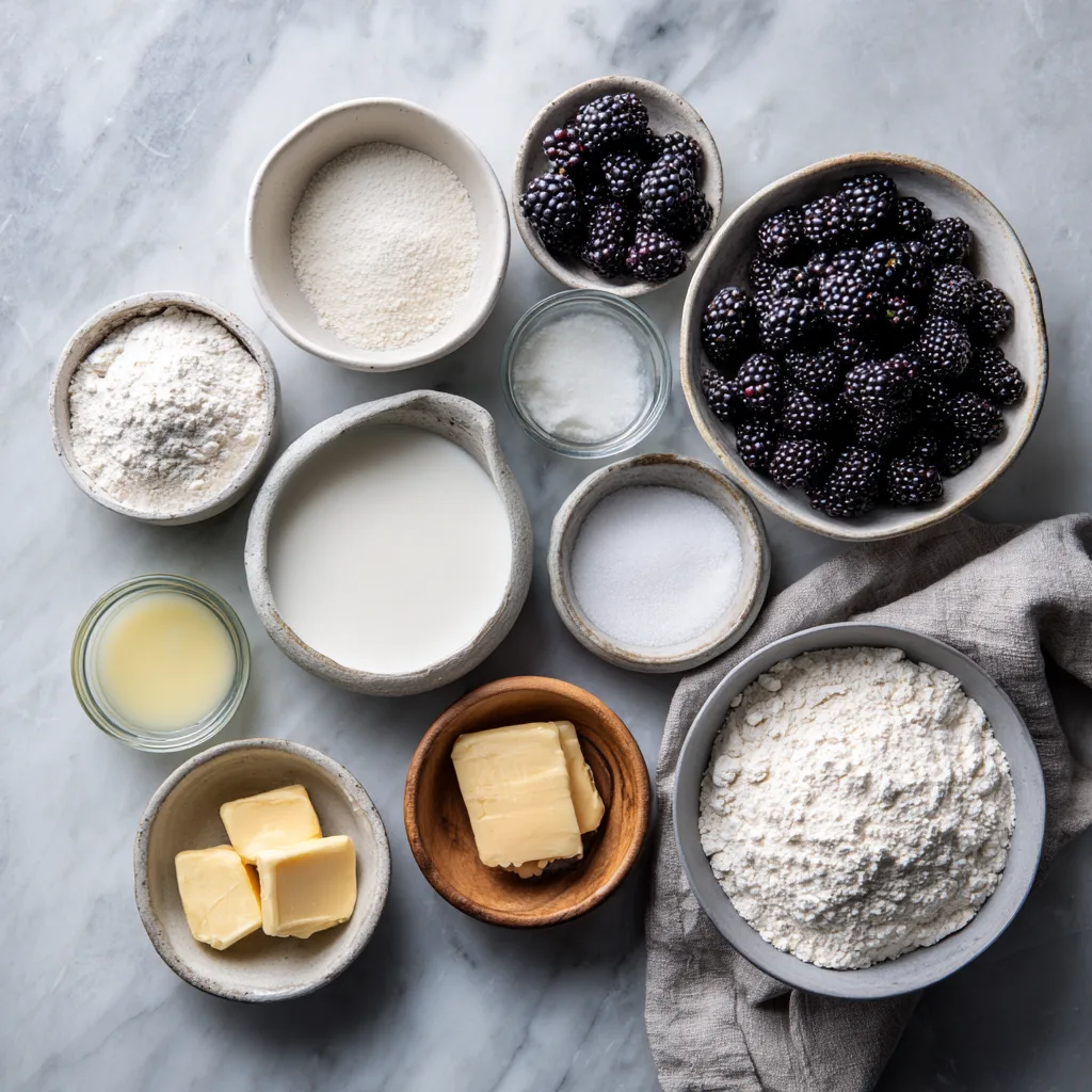 Each ingredient plays a specific role. The milk and butter enrich the dough, making it soft and tender. The cornstarch thickens the blackberry filling so it stays beautifully layered inside the rolls instead of leaking out.