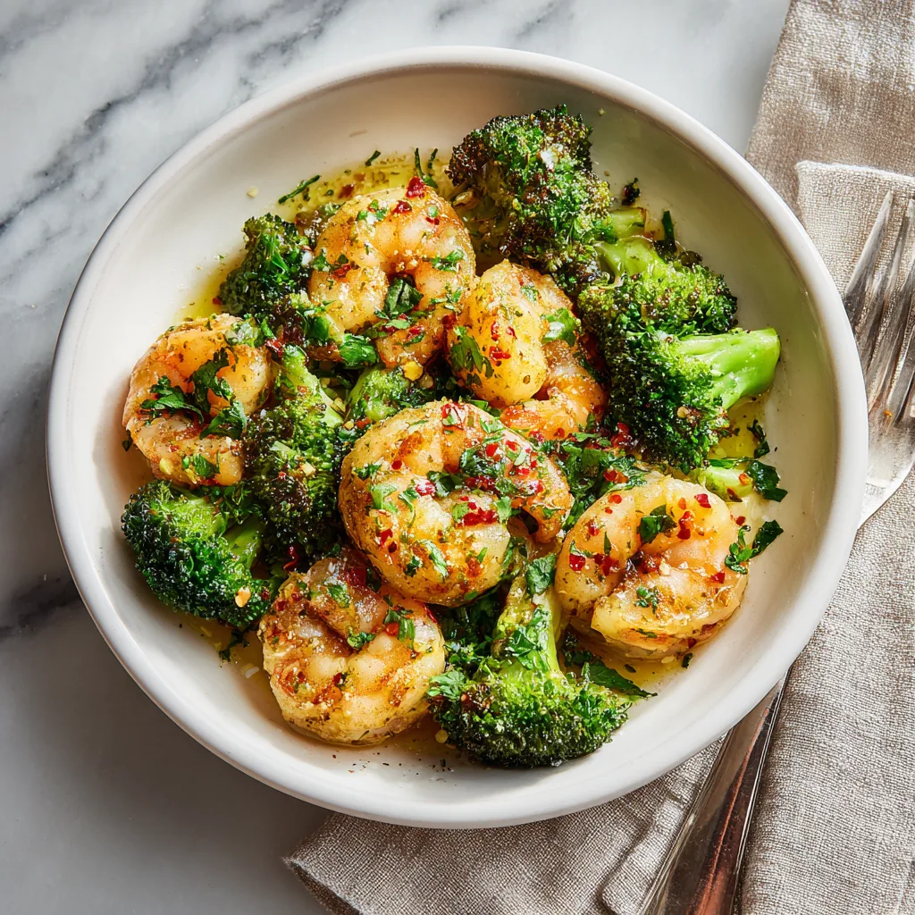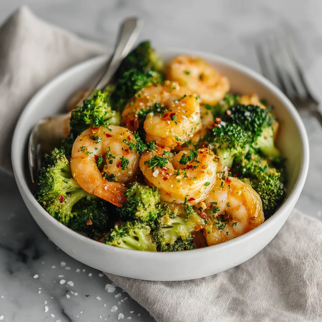 A quick one-pan skillet featuring juicy shrimp and tender broccoli tossed in rich garlic butter sauce.