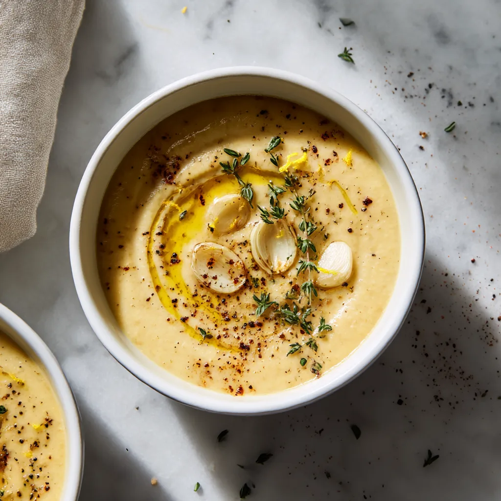 A silky, immunity-boosting roasted garlic and lemon soup packed with anti-inflammatory ingredients and vibrant flavor.