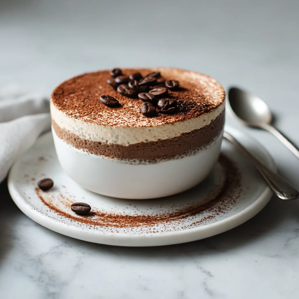 A creamy, coffee-flavored chia pudding inspired by tiramisu with high protein and no baking required.