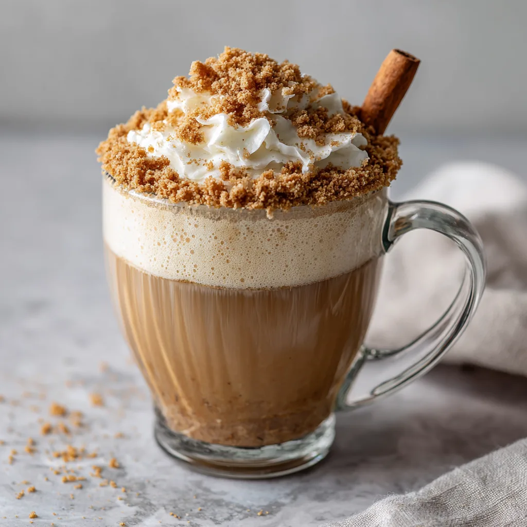 - Garnish with cookie crumbs and a cinnamon stick. Serve warm.