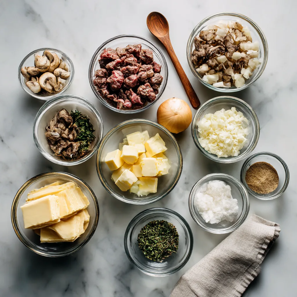 - Sauté Vegetables: In the same skillet, add remaining butter. Sauté onions, garlic, and mushrooms until softened and fragrant, about 5–7 minutes.