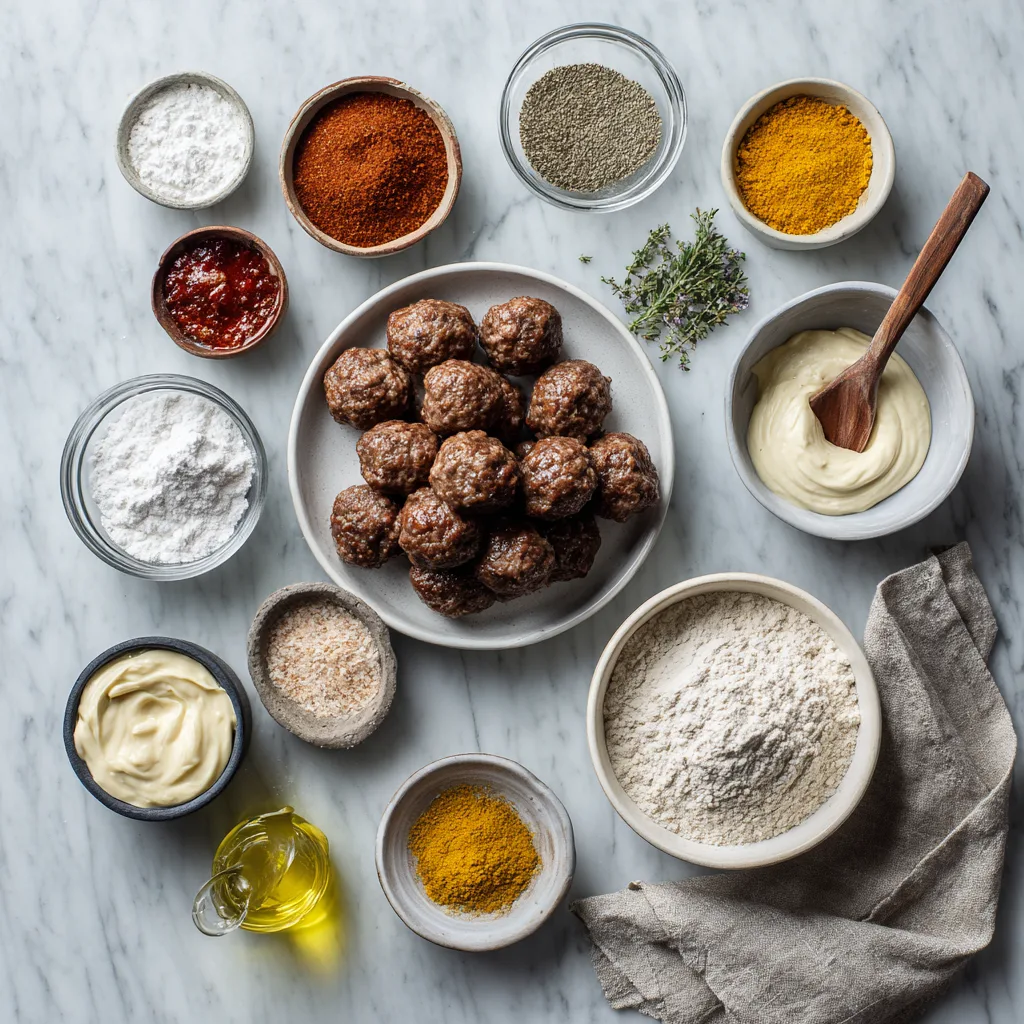 Ingredients for Spicy Creamy Firecracker Meatballs
