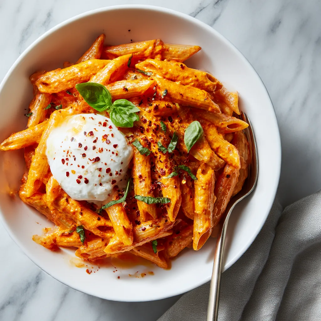 This is not your average pasta night. This is Spicy Vodka Pasta with Creamy Burrata—and once you try it, it’s going into your regular rotation.